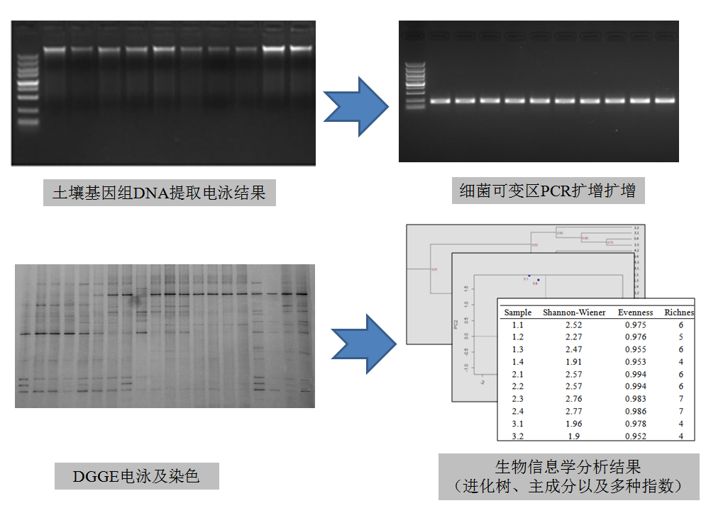 目前尽管微生物高通量测序在群落结构分析中越来越发挥重要作用,但经典的PCR-DGGE在对少量样本分析中依然发挥着重要的作用。